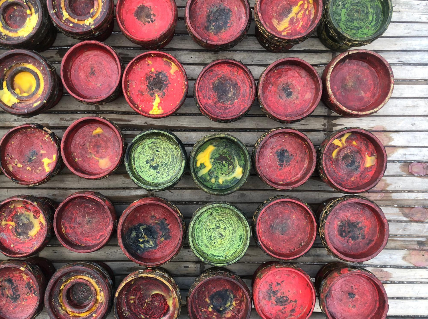 Тара, загрязненная лакокрасочными материалами, – это металлические бочки, банки, ведра из-под красок, эмалей, лаков. Также сюда относятся пластиковые канистры, контейнеры, упаковки от промышленных ЛКМ. Инструменты ЛКМ – валики, кисти, шпатели – также могут являться опасными отходами.